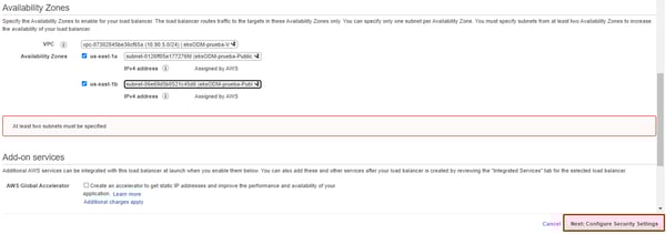 - Zonas de disponibilidad: seleccione el VPC que utilizó para sus instancias EC2.